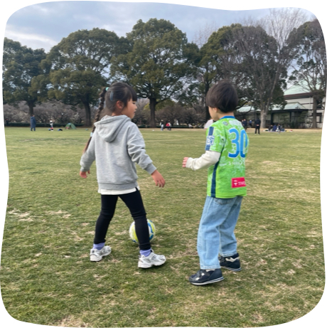 ボールを蹴る・止める・ゴールを狙うなど、遊び感覚のサッカー。